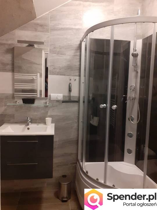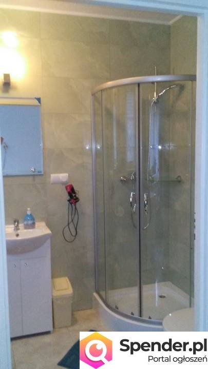 Apartament wakacyjny z łazienką, sypialnią i wyposarzoną kuchnią.
