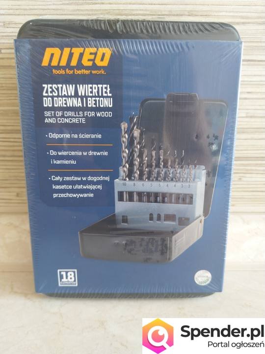 Do sprzedania mam Nie używany zestaw wierteł do drewna i betonu oryginalnie zapakowany renomowanej firmy Niteo.