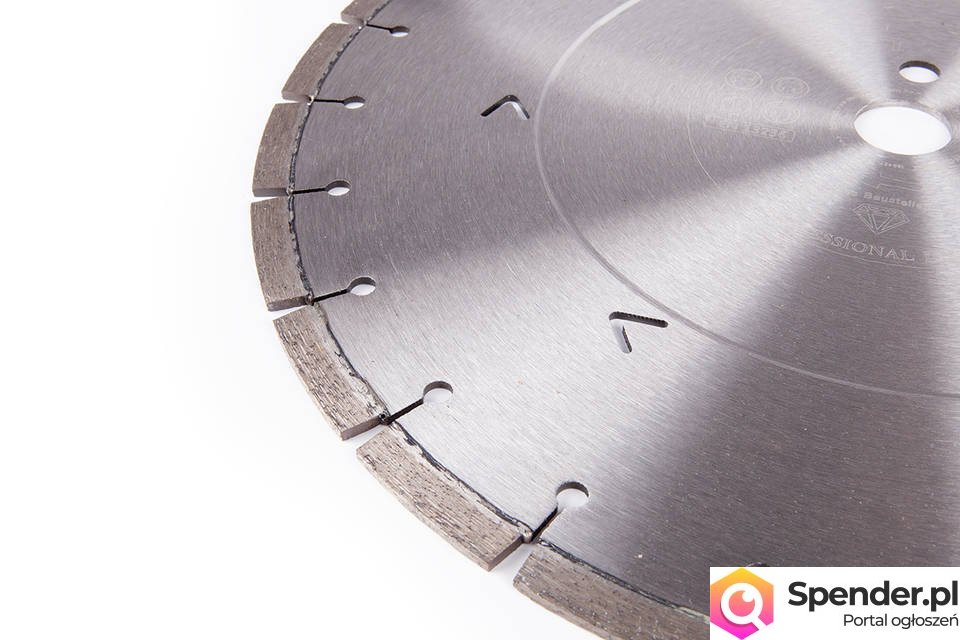 Profesjonalna tarcza diamentowa 350 do cięcia świeżego betonu. Tarcza najwyższej klasy, bardzo żywotna i szybka, tnąca kilometry. Nie bije, nie faluje, jest bardzo odporna na przegrzewanie. Tarcza laserowo spawana, przeznaczona do pracy ciągłej, może ciąć na sucho i mokro w ekstremalnie ciężkich warunkach. Znakomicie spisuje się podczas robienia dylatacji w betonie. Również doskonale sobie radzi w świeżym betonie zbrojonym oraz w betonie z rozproszeniem sięgającym nawet 40 kg/m³. Bardzo chwalona przez specjalistyczne firmy posadzkarskie i drogowe. Przy sprzedaży tej tarczy notujemy 100% powrotów klientów po zakup następnej. Tarcza sprawdzona i wytestowana, produkowana w niezmienionej formie od ponad 15 lat.