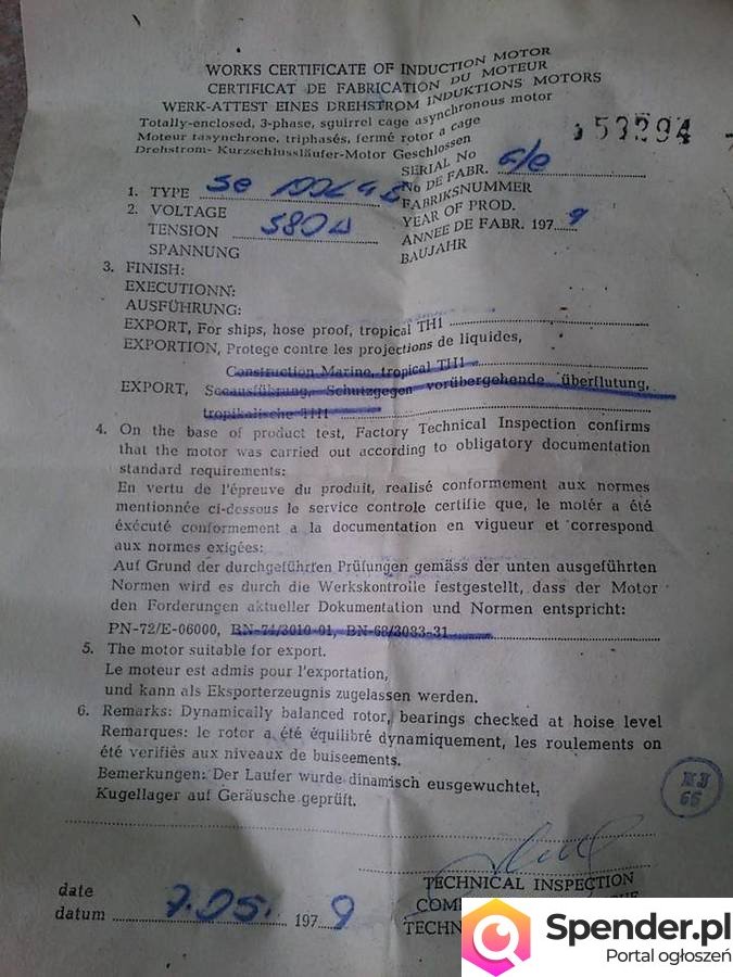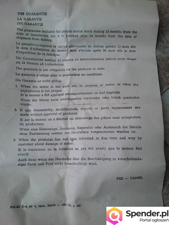 Do sprzedania nowy silnik 5 KW trójfazowy z gwarancją polski FSE TAMEL na eksport z gwarancją z 1979r nieużywany oś wałka gr. 28,5 mm