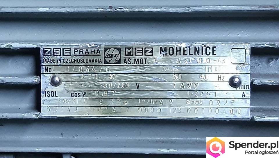 Sprzedam silnik. Moc 370W, obroty 1420, 380V. Średnica ośki silnika 19mm. Sprawny.