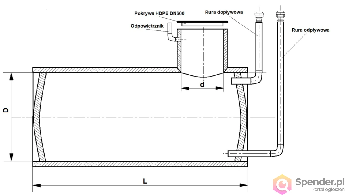 Cena w ofercie dotyczy zbiornika o pojemności 8 m3, SN2, DN1400.