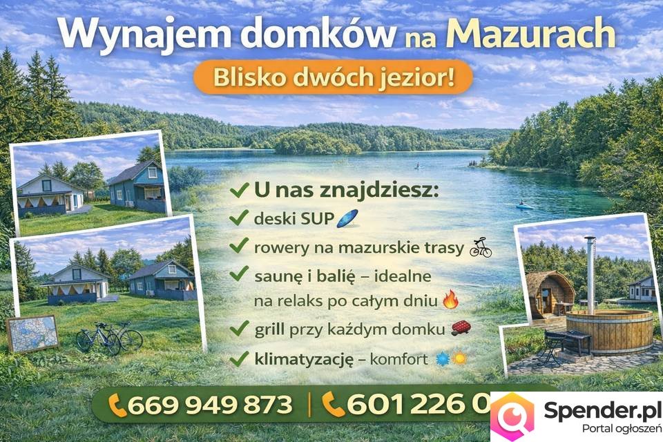 Odetchnij na Mazurach i zatrzymaj się w naszych komfortowych domkach położonych tuż przy dwóch jeziorach ??