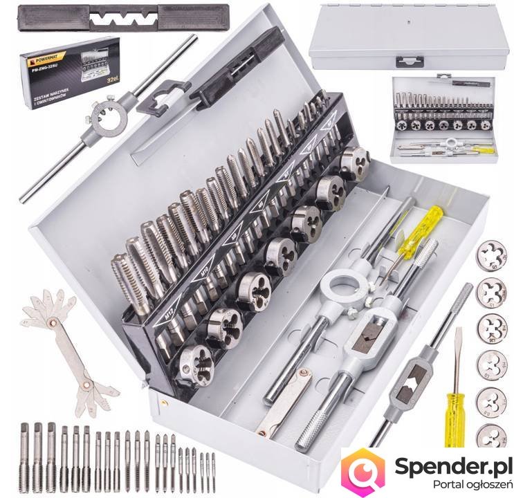 Nowoczesny zestaw gwintowników i narzynek M3 - M12. W skład zestawu wchodzą 32 różne narzędzia wykonanych z wysokogatunkowej stali. Całość umieszczono w metalowej walizce do transportu i przechowywania.